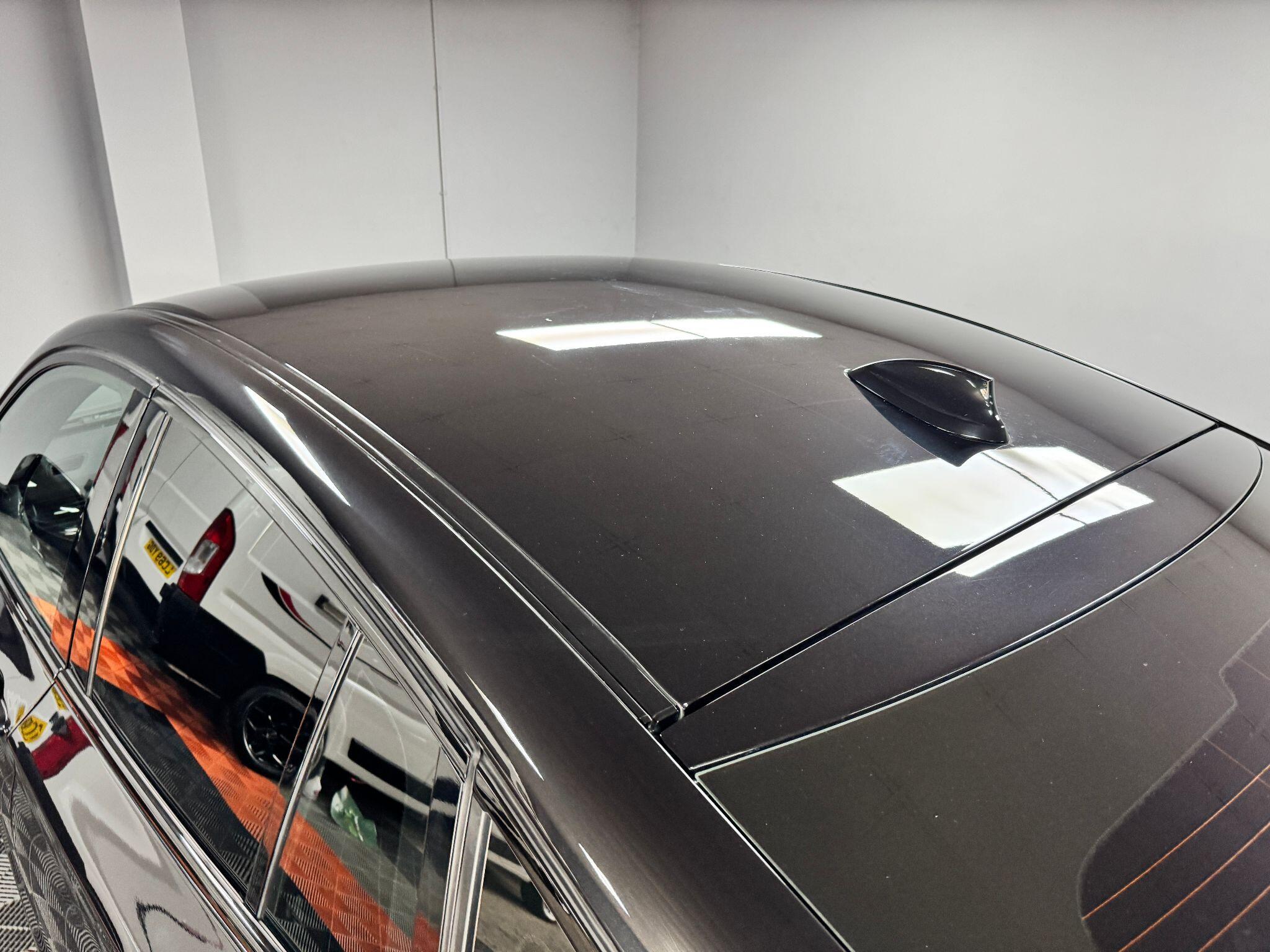 Finished in Sapphire Black with Black Nevada leather upholstery with white stitching with contrasting anthracite fine line dark wood/Piano Black fascia trim and inlays.