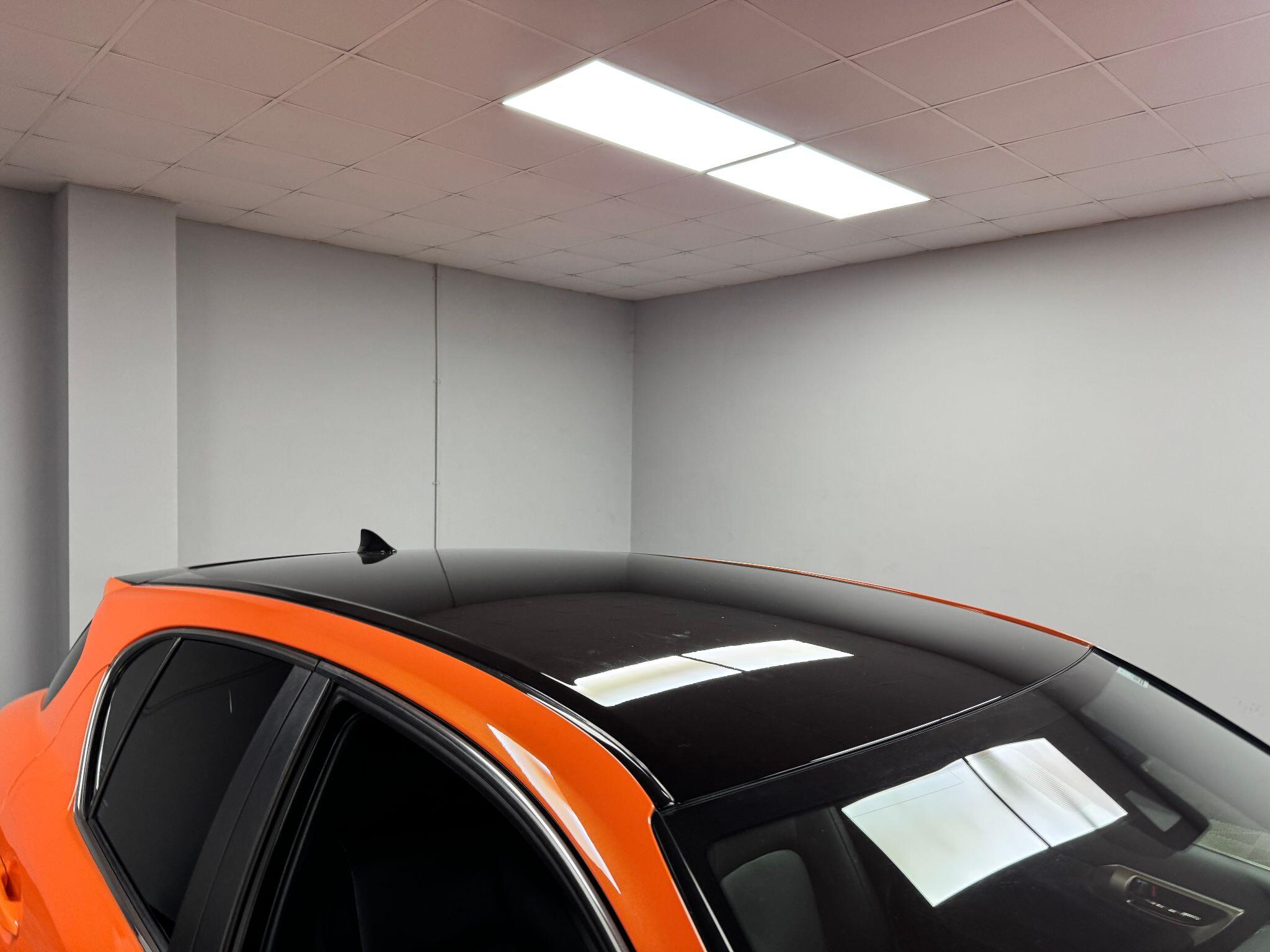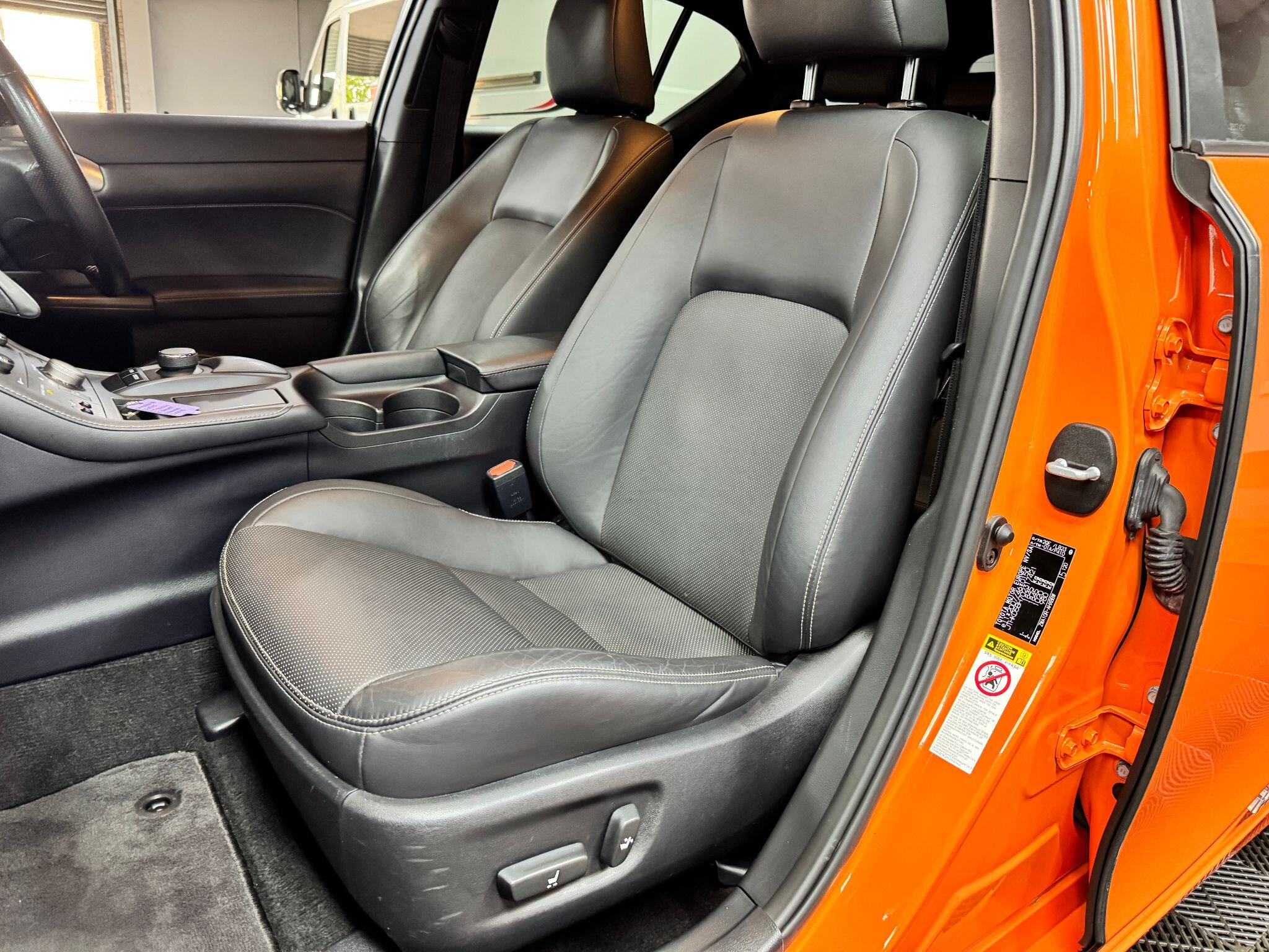 Finished in Lava Orange Pearl with black half leather upholstery with satin grey/silver fascia trim and cappings.